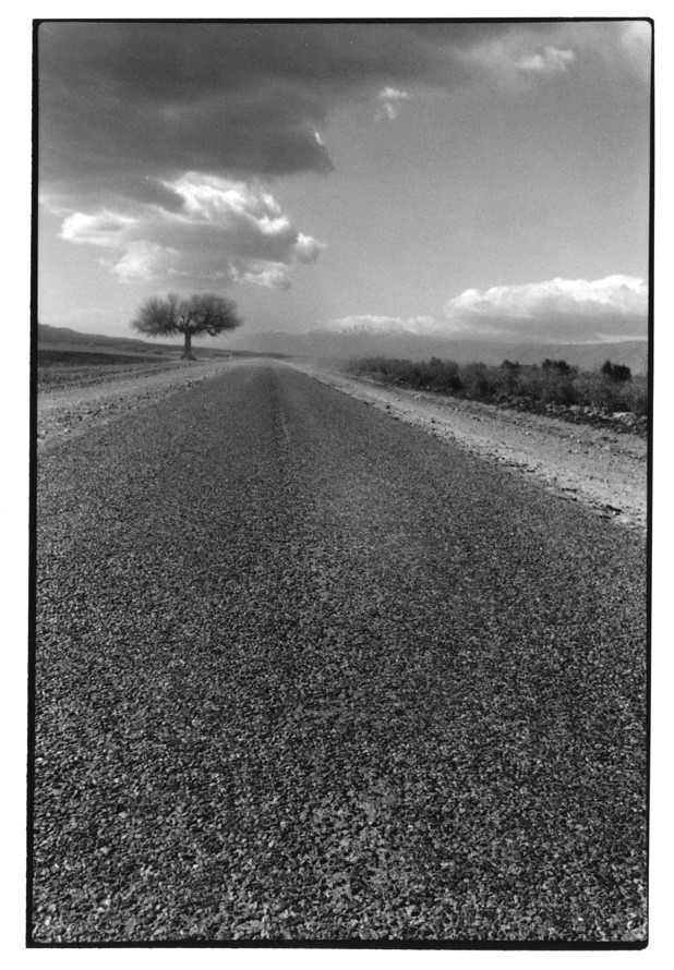 La piste, tout juste bitumée, s’ouvre droit vers le sud. À l’horizon pointent les premiers massifs de l’Atlas auréolés d’épaisses nuées blanches. Esseulé dans cette plaine désertique, l’arbre se couvre lui aussi de son chapeau moutonneux de gros nuages.